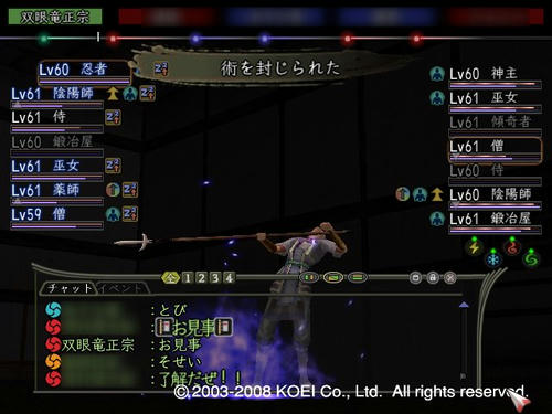 ちなみに、開幕は神職の片方に<金縛りの術>してから<風遁の術・極>なぞを。